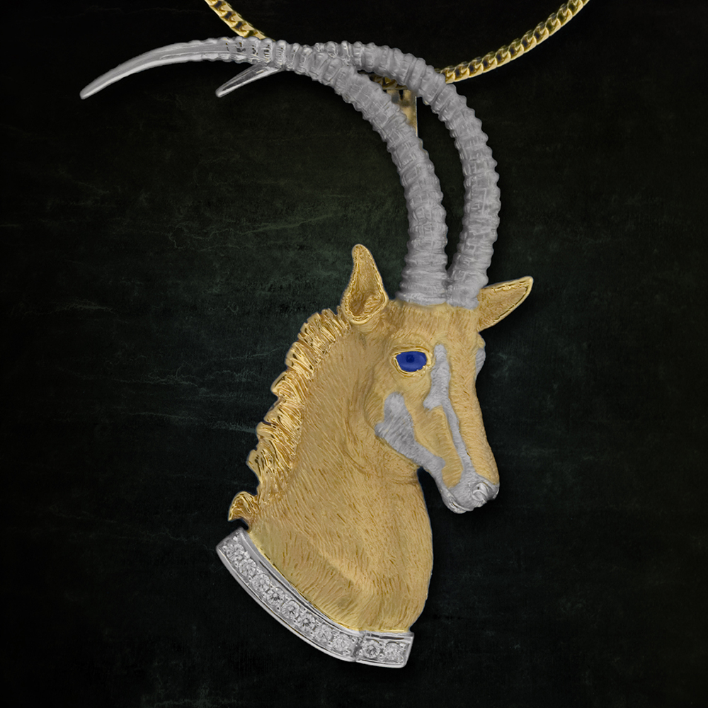 Sable profile pendant handcrafted in silver and gold. Description Donec nec justo eget felis facilisis fermentum. Aliquam porttitor mauris sit amet orci. Aenean dignissim pellentesque felis.